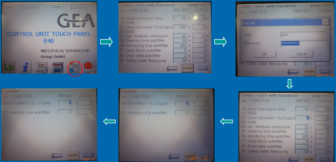 2.点击72项的“300s”,界面弹出用户名/密码输入框,输入用户名:GEA、密码:4000 进入编辑模式;
