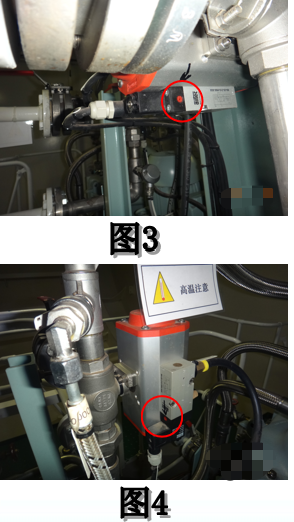 3.注意:此方法无需启动油水分离器,三通阀始终处于关闭状态,无法验证三通阀动作,三通阀机械动作可手动测试(用细螺丝刀顶压红圈内红色按钮,检查动作灵活性)。