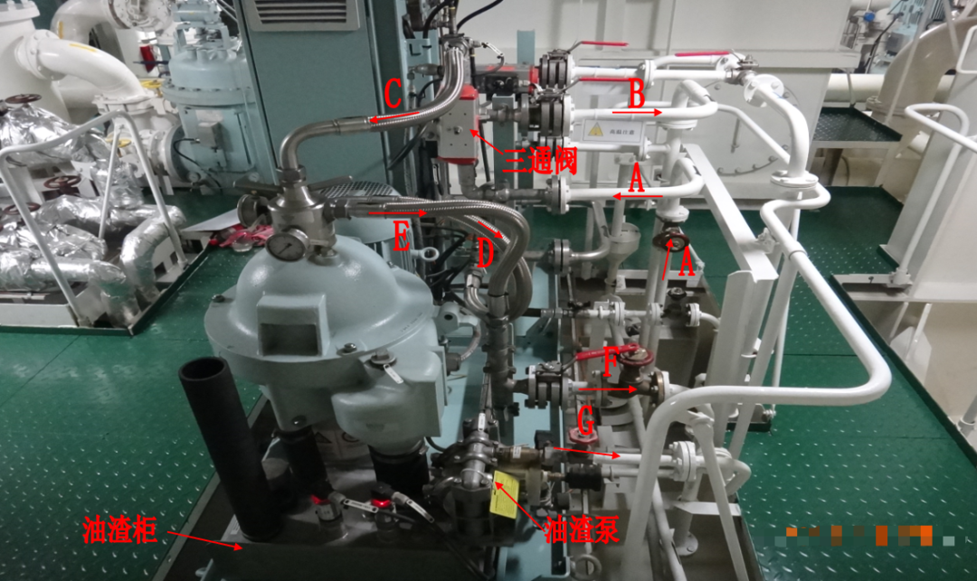 2.分离器完成分离后,重液经F管路进入油渣柜,轻液经D管路进入油份检测环节;