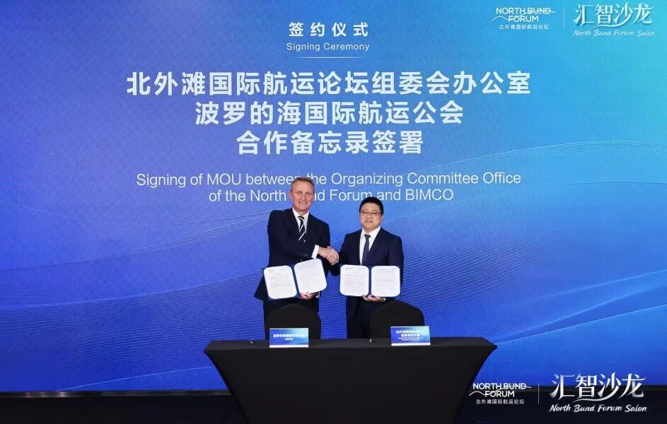 在随后举行的三项仪式中,北外滩国际航运论坛组委会办公室与波罗的海国际航运公会(BIMCO)签署了《合作备忘录》,双方将在资源共享、行业发展等领域深化合作,进一步提升北外滩国际航运论坛的国际影响力。随后,“NBF365对接服务平台” 上线。该平台作为北外滩国际航运论坛的线上延伸,将联动北外滩地区、陆家嘴-世博地区等七大航运服务集聚区,打造365天不间断的“政策窗口”与“对接桥梁”。除此之外,现场还为“2025年上海市促进现代航运服务业创新项目”举行了颁证仪式。经过严格评选,14个创新项目脱颖而出,包括示范项目2个、鼓励项目3个、潜力项目6个、重大研究成果3个。据悉,新一轮上海市现代航运服务业创新政策已于近日正式发布。