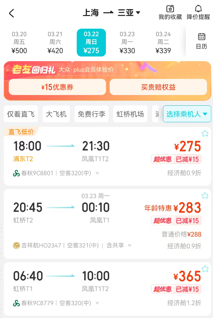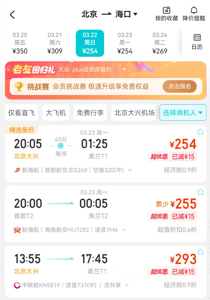 记者梳理发现,三月中下旬北京飞往三亚的机票价格低至275元,北京飞往海口低至255元,上海飞往海口低至244元,重庆—三亚、深圳—海口、成都—海口、郑州—海口等热门航线,机票均价低于400元。