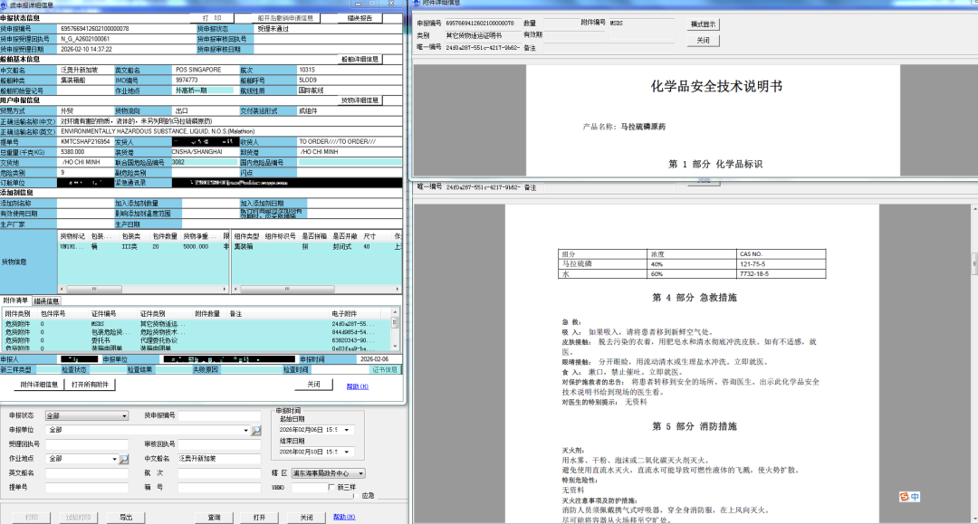 不仅核查船舶适装证书、船员资质,更要根据危化品种类、危险特性确认安全运输条件,新增取样检验等查验手段,实现“证书核验+条件确认+现场查验”三重管控,重点排查匿报、谎报危化品等隐患。