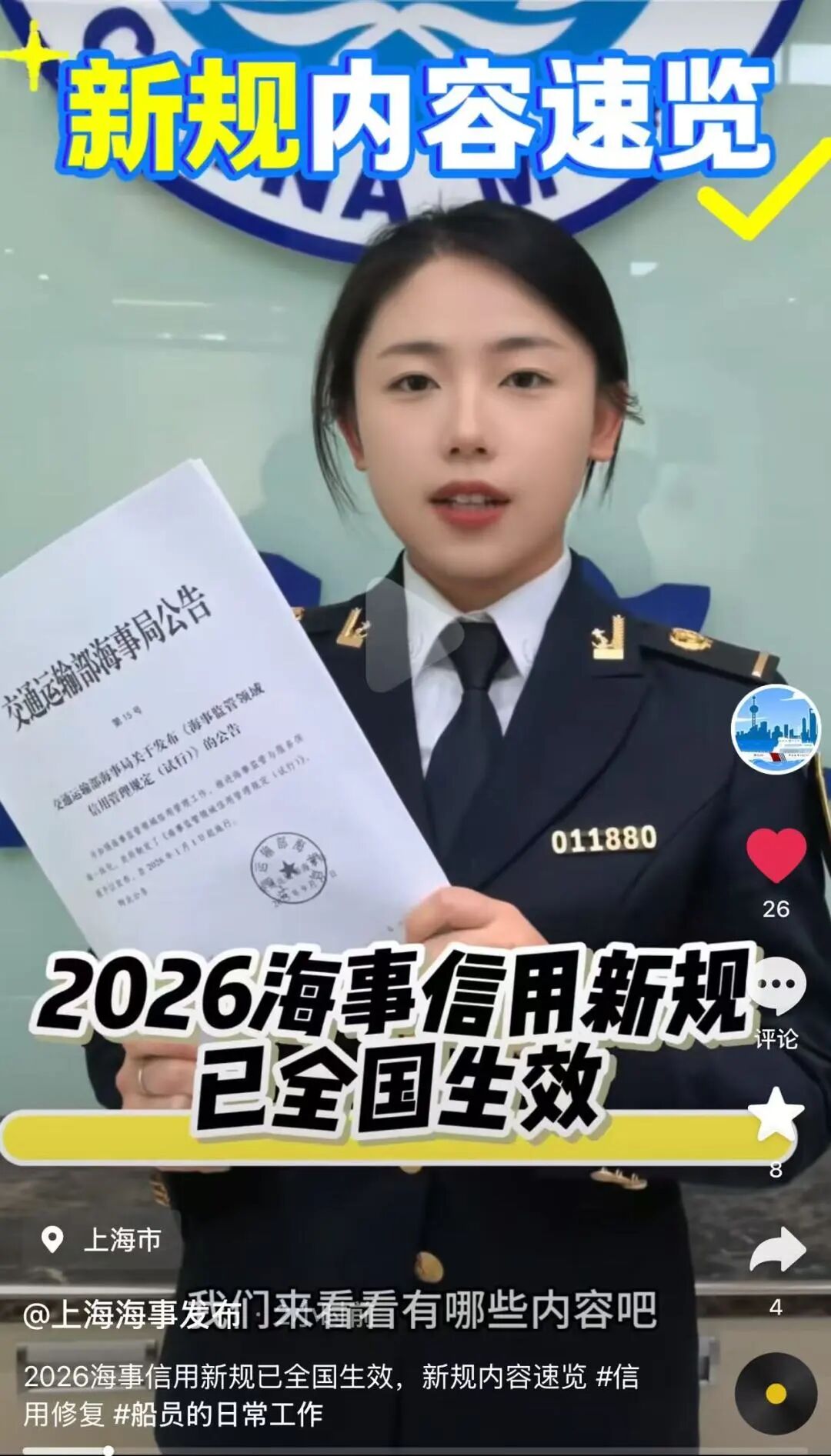 单增卓嘎:这段时间在政务中心实训,主要负责受理船载危险货物申报审批和港区水域安全作业备案等业务,从审核材料、梳理流程到耐心给群众答疑,慢慢熟悉了海事政务窗口的工作节奏,也真切体会到 “窗口无小事” 的责任。除此之外,我还独立策划、拍摄并制作了 4 条抖音宣传视频,用更鲜活的方式解读海事工作。这段实训让我既夯实了业务基础,也学会了用更接地气的方式传递海事声音,收获满满,也更有动力在之后的工作中继续努力~