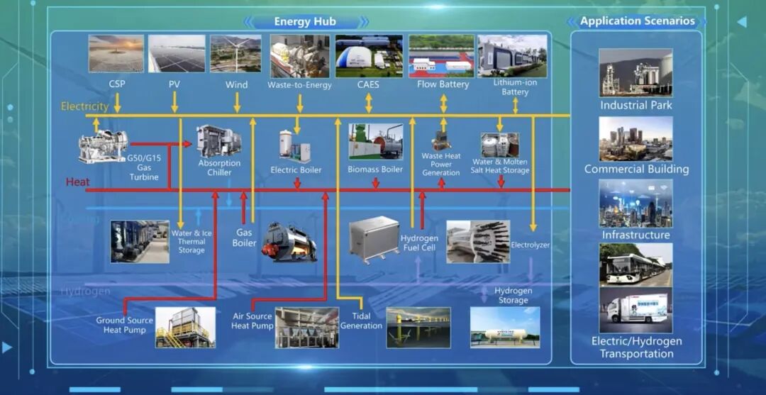 实现园区能源管理系统化。该系统建立关键能源设备的数学模型库及负荷侧可调度资源数据库,并引入NBEATSx模型与AI气象模型,系统具备小时级、千米级超高分辨率的风资源预测能力,光伏风电预测准确率超90%,可实现分钟级的多能流模拟。