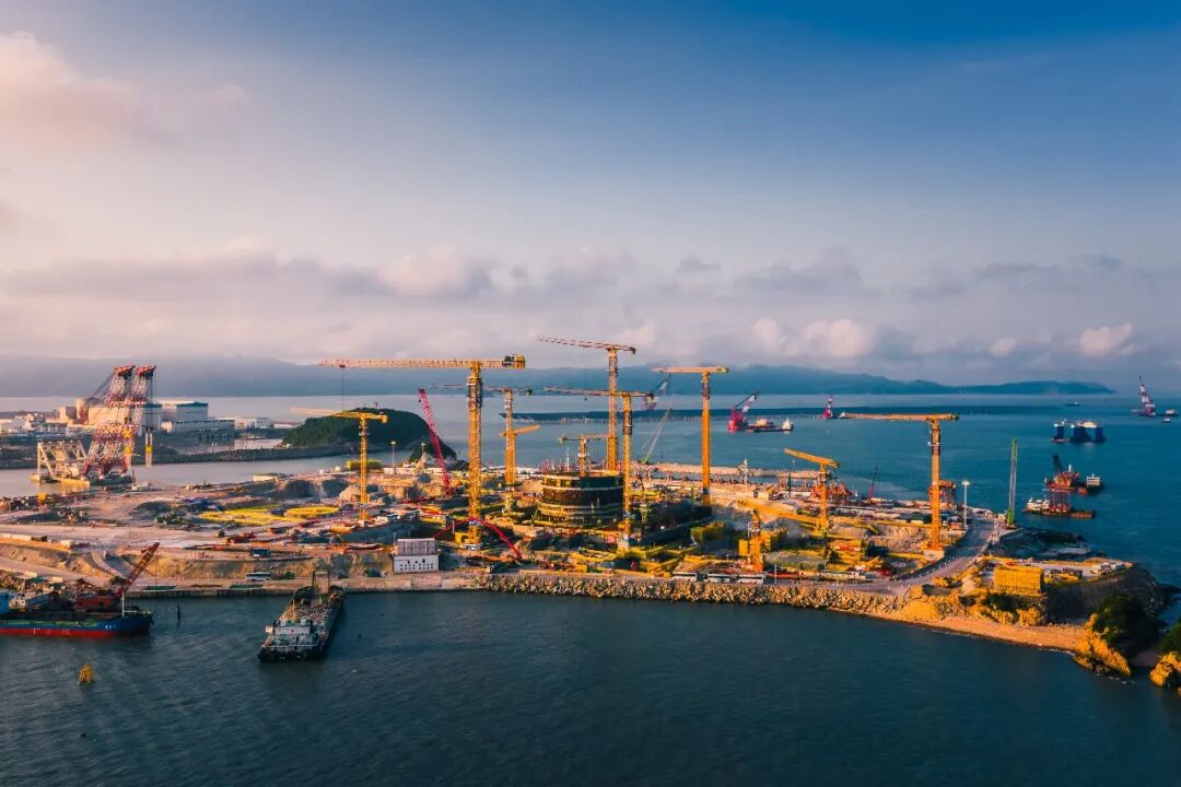 当前,山东招远核电项目1号机组正处于土建施工高峰阶段,核岛反应堆厂房内部结构底板、安全壳基础施工正稳步推进;周边厂房墙体、核级廊道及机械通风冷却塔替代垫层基础施工正有序进行;同时,2号机组正全力推进FCD前准备工作。
