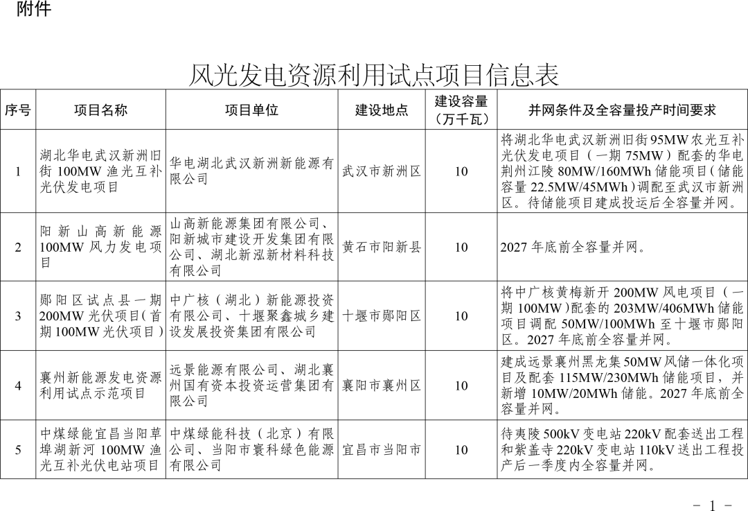 根据《省发改委 省能源局关于印发湖北省加强风光发电资源利用试点方案的通知》(鄂发改能源〔2025〕103号)和《省能源局关于推进新能源发电项目建设的通知》(鄂能源新能〔2025〕50号),现就加快推进风光发电资源利用试点项目通知如下。