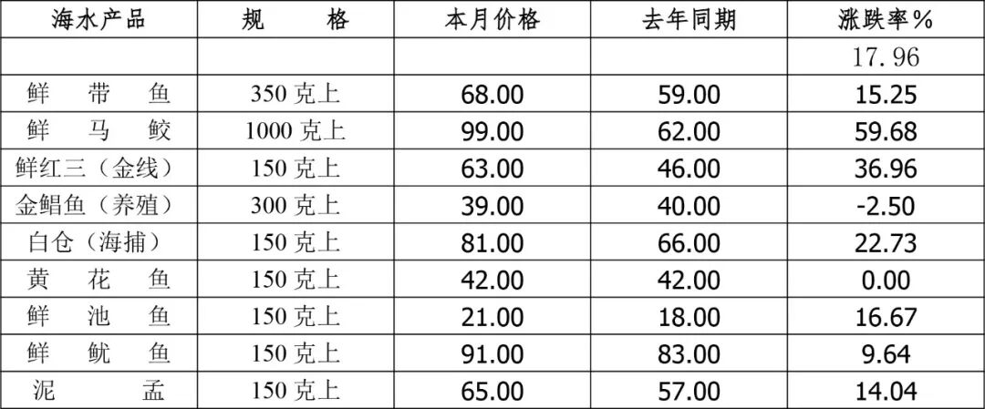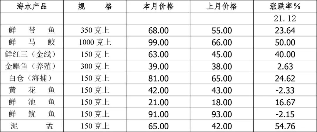 海水类产品:主力品类集体大涨