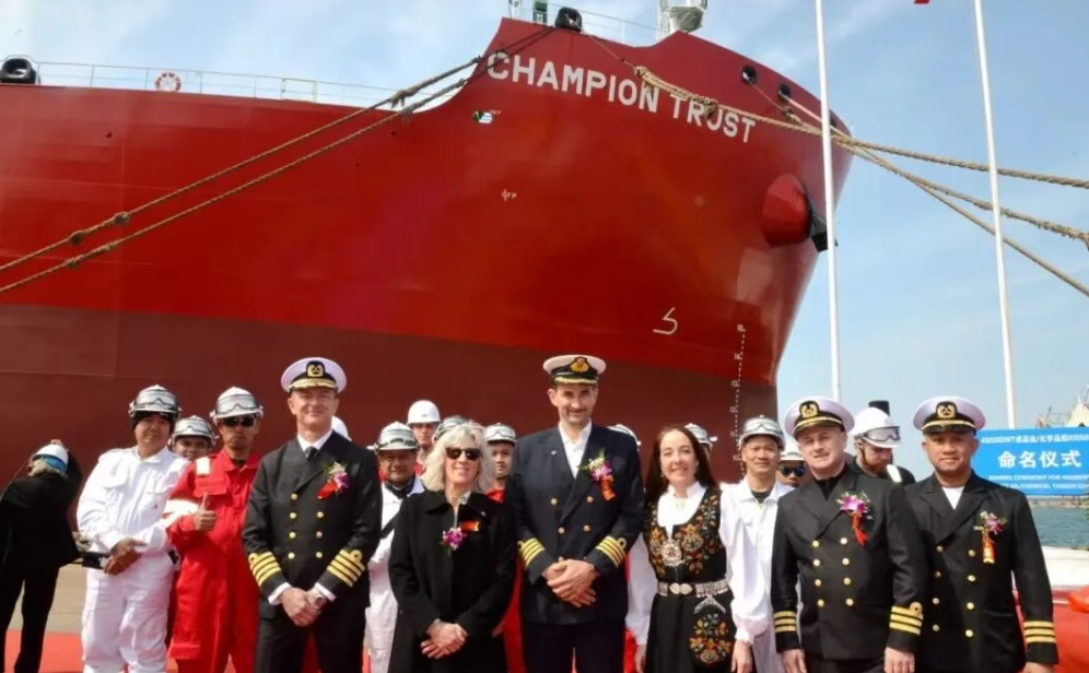 3月20日,京鲁船业为挪威CHAMPION TANKERS AS建造的两艘MR化学品船“CHAMPION TRUST”、“CHAMPION TRADER”在该公司码头举行命名仪式。该系列船为京鲁船业建造的新一代MR化学品船,设有20个货舱,可以同时运输20种不同货品。