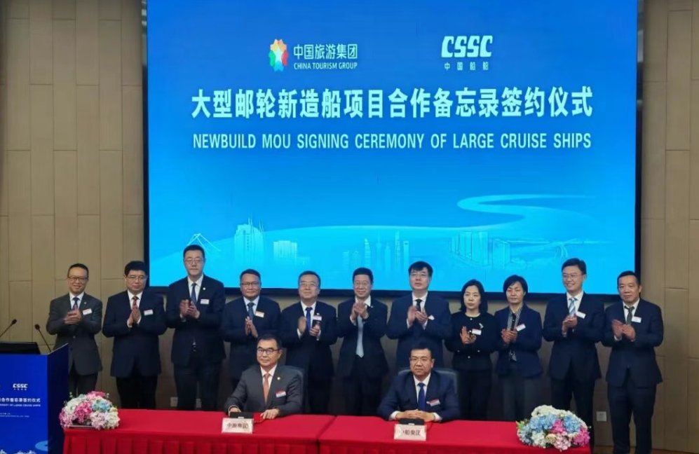 3月20日,中国旅游集团有限公司与中国船舶集团有限公司在上海正式签署《大型邮轮新造船项目合作备忘录》,计划新造2+1艘大型邮轮,目标于2030年前交付首艘船。