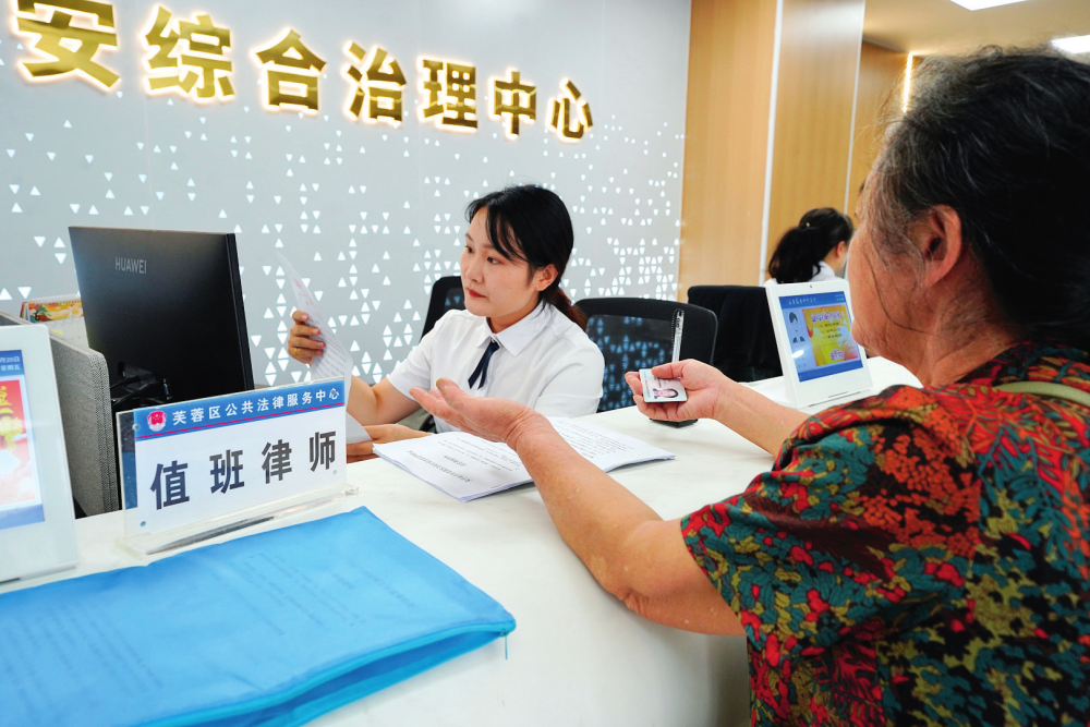 2025年11月,家住湖南省长沙市天心区某小区的王先生,来到天心区社会治安综合治理中心(以下简称“综治中心”)求助。由于小区车库地坪漆雨天湿滑,他家车辆在同一位置发生3次碰撞,他向物业、开发商反映数月无果。天心区综治中心随即“吹哨”,召集在中心轮驻的住建部门、社区、开发商和物业等现场勘查,多方共同商定“加装减速带+增设警示牌+雨天引导车辆从其他入口通行”的整改方案,纠纷顺利化解。王先生找到的“综治中心”,受天心区委领导、由天心区委政法委统筹协调,推动职能部门依法履职、形成合力,在法治轨道上推动矛盾纠纷一站式化解。“综治中心受理婚姻家庭、邻里关系、欠资欠薪、医疗卫生、交通运输、房产物业等各领域矛盾纠纷,接收信访诉求,提供法律咨询、法律援助、心理咨询等服务,把多部门变成‘一扇门’。”长沙市天心区委政法委副书记彭文杰说。“设立综治中心,有助于减少群众寻找和识别纠纷解决机构、方式的成本;多元解纷力量集成形成调解合力,可有效减轻群众‘诉累’。”中共中央党校(国家行政学院)政治和法律教研部教授刘锐说。近日,《瞭望》新闻周刊记者在湖南采访发现,当地通过纵向畅通联动渠道、横向吸纳多元力量,精准回应现实治理需求,推动矛盾纠纷化解在基层、在萌芽状态。目前,湖南122个县级综治中心已完成规范化建设并实体运行,法院、检察院、公安局、司法局和信访局、法学会入驻率达100%,人力资源社会保障、住建、卫健、妇联和调解组织入驻率超过80%,推动90%以上的矛盾纠纷在县域内就地化解。在湖南省湘潭县综治中心,工作人员(右)正在为群众提供法律咨询(2026 年 2 月 3 日摄) 谢奔摄 / 本刊不只在湖南。贵州各县级综治中心每日开展“访情、警情、诉情、舆情、社情”五情监测,确保矛盾发生及时介入;浙江着力推进综治中心信息系统集成上线,打造“网上综治中心”;甘肃明确将适宜调解的民商事诉前案件、警情类矛盾纠纷、申诉求决类信访事项中的矛盾纠纷等,分流至综治中心集中化解……全国多地以综治中心规范化建设为抓手,织密织牢矛盾纠纷化解“一张网”。数据显示,全国省级综治中心实现全覆盖,市、县、乡三级综治中心覆盖率已达90%。2025年,全国县级行政区划实现综治中心全覆盖并正式运行,常驻部门入驻率达100%,推动化解矛盾纠纷976.4万件。2025年,长沙市芙蓉区荷花园街道德政园社区网格员在走访时发现:怡心苑小区某单元业主,与电梯公司在加装电梯施工过程中因工程质量、工程款支付等问题发生纠纷,导致工程停滞不前,影响业主出行和消防安全。德政园社区综治中心对此事进行调解,但因当事双方分歧较大调解未果,社区居民向荷花园街道综治中心投诉。此后,由荷花园街道综治中心主任牵头,组织区住建局、街道安监站、司法所等组建专班展开调解,但电梯公司超过约定施工期限后仍敷衍了事,纠纷迟迟未解决。同年7月,芙蓉区综治中心通过湖南省委政法委统筹建设的湖南省矛盾纠纷多元化解信息系统(以下简称“湘矛调”)了解到此事进展,随后启动督办,要求街道综治中心加强调解力量,尽快化解纠纷。次月,荷花园街道综治中心再次组织调解会,荷花园街道行政执法大队对施工方下达安全隐患整改通知书。此后,在网格员、业主代表督促下,电梯终于顺利加装。这一纠纷的圆满化解,是长沙多级综治中心分级负责、协同发力的缩影。上下贯通的有序运转中,复杂纠纷有了清晰的解决路径。“从全国实践看,多地综治中心实行省市县乡村五级体系。按属地管理、分级负责原则,各级综治中心定位清晰、分工协作,确保履职到位。”中共中央党校(国家行政学院)科学社会主义教研部教授向春玲说。长沙市芙蓉区综治中心入驻的法律援助律师为来访群众提供法律咨询 (2025 年 9 月 12 日摄) 尹昊天摄记者了解到,在这五级体系中,省市侧重统筹指导,县乡村注重实战。村社依托网格员、村社干部、人民调解员组成的基层队伍,常态化排查矛盾线索,第一时间对邻里琐事、家庭纠纷等简单矛盾就地化解;镇街调动基层派出所、司法所等站所力量,合力调解村级上报的复杂纠纷;区县负责督办镇街多次调解未果的疑难矛盾,或协调处置跨领域、跨部门的矛盾;市级重在承上启下,负责区域工作规划、数据汇总、指导下级综治中心的规范化建设;省级侧重政策制定、资源统筹、督办落实与综治信息平台的建设,不直接受理具体个案。在明晰分工的基础上,长沙实施“三色预警、三诊分调”机制。各级综治中心在受理辖区内矛盾纠纷后对具体事项进行研判,按照难易程度、风险大小递增顺序,标注为“绿黄红”三色——绿色事项由村社综治中心组建村社干部、五老、业委会等为主的专兼职调解队伍“初诊”,确保小事不出村;黄色事项由镇街综治中心依托派出所、司法所、律师事务所和法庭、相关职能部门等“复诊”,确保大事不出镇;红色事项由县级综治中心或分管县领导召集相关部门和调解组织“会诊”,确保矛盾风险不上行或外溢。目前在湖南,矛盾纠纷已实现村社化解70%、镇街化解20%、县级化解10%。与此同时,作为多层级联动平台,湖南省各级综治中心通过加强系统管理、持续跟踪督办,压实条线上的责任链条,防止任务空转或互相推诿。数字赋能闭环管理。综治中心