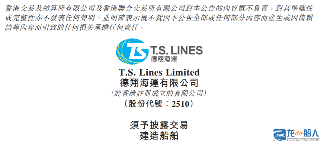 中国台湾船东德翔海运公布2026年首笔造船合同,继续选择向大陆船厂下单造船。
