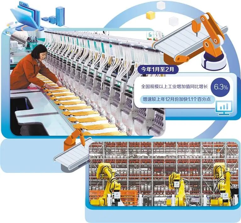传统产业是现代化产业体系的重要组成部分,是推动产业转型升级、接续发展新动能的关键领域。国家统计局数据显示,今年1月至2月,全国规模以上工业增加值同比增长6.3%,增速较上年12月份加快1.1个百分点。工业经济实现良好开局,彰显了传统产业稳中提质的韧性和转型升级的内生动力。