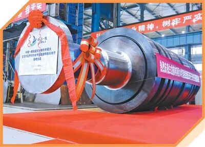 黑龙江齐齐哈尔的中国一重集团生产基地,国产首支自主化标准百万等级常规岛整锻低压转子的完工仪式近日举行。随着红色绸布缓缓揭开,核电常规岛机组的“心脏”部件逐渐展现在眼前,巨型锻件的表面如同镜面一般。