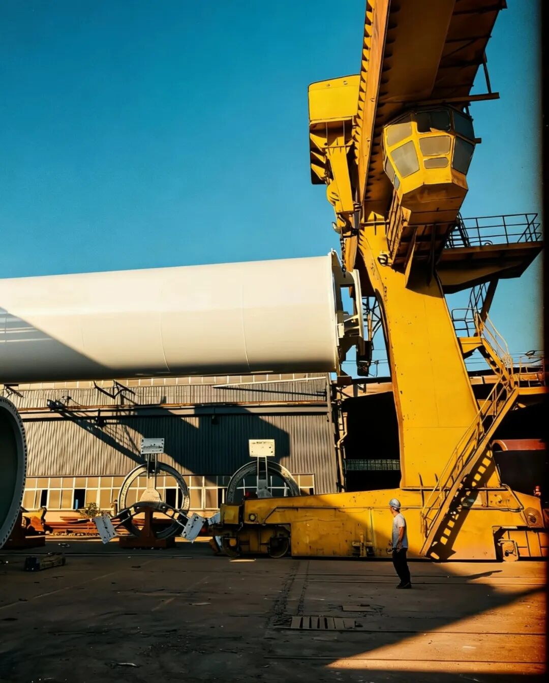 2025 年 8 月 22 日,入职第 4 天的我,跟随前辈走进泰胜的上海生产基地。巨大的风电塔筒在吊臂下稳稳矗立,我与同事们在一旁驻足凝望,感受着精工制造的力量,也读懂了泰胜人同心聚力的初心。