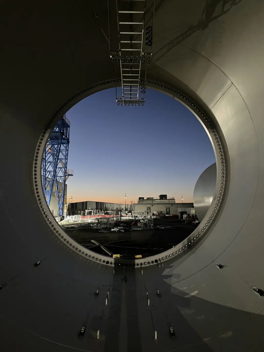 从风机塔筒的圆窗望去,晨昏的天光与厂区的轮廓交叠,这是泰胜人眼中独有的风景。25年匠心筑造,我们以钢铁为骨、以风电为魂,在每一段塔筒里,都藏着对绿色能源的执着与对未来的期许。这扇 “风之眼”,见证着泰胜从初心到领航的征程,也映照着我们与风共生、与时代同行的坚定信念。