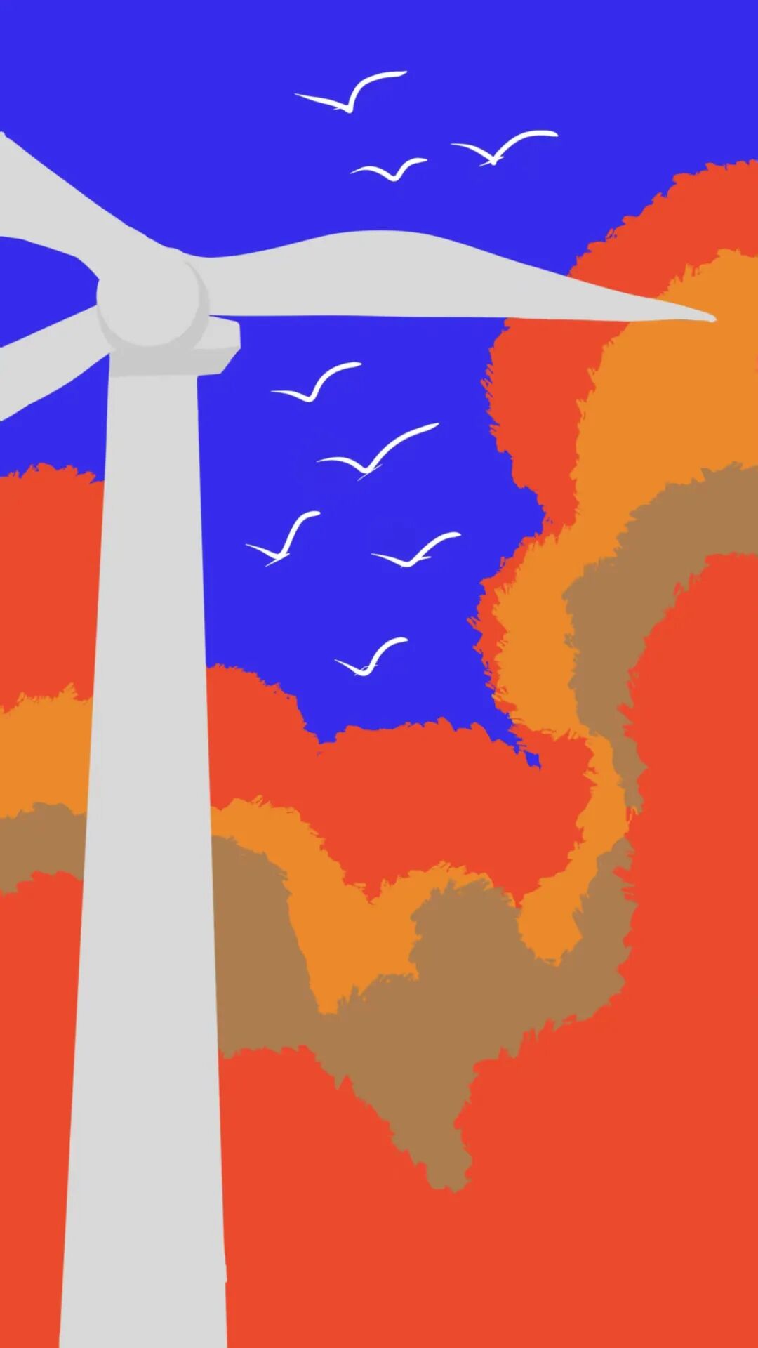 画面以连绵青山、沃野黄花、蔚蓝晴空为底色,勾勒出自然与能源共生的美好图景,风机矗立其间,既是泰胜风能深耕风电领域 25 年的具象象征,也代表企业始终以绿色能源为初心,借风之力、筑塔之基,在守护生态青山的同时,书写可持续发展的时代华章。