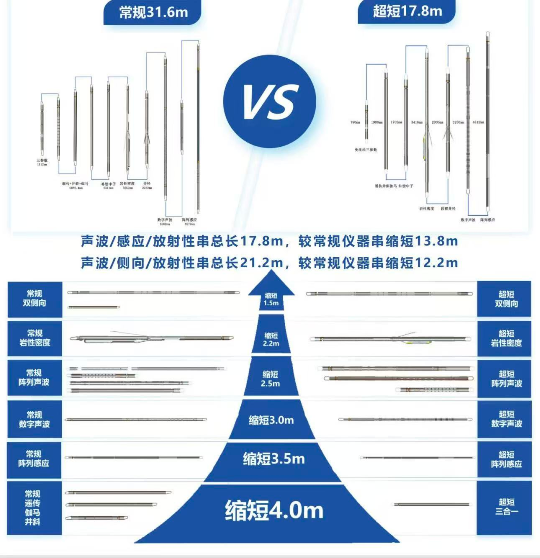 该方案通过集成遥传、伽马(伽马能谱)与连斜一体式设计,以及井径与微球测井仪一体化、声波、感应、侧向探头与线路集成等技术,将仪器串长度大幅缩短至17.8米,较常规仪器缩短了13.8米。这一突破不仅提高了测井效率,还显著降低了客户的运营成本。同时,该方案与主流测井系统全面兼容,确保了数据的高质量获取,为石油勘探提供了强有力的技术支持。