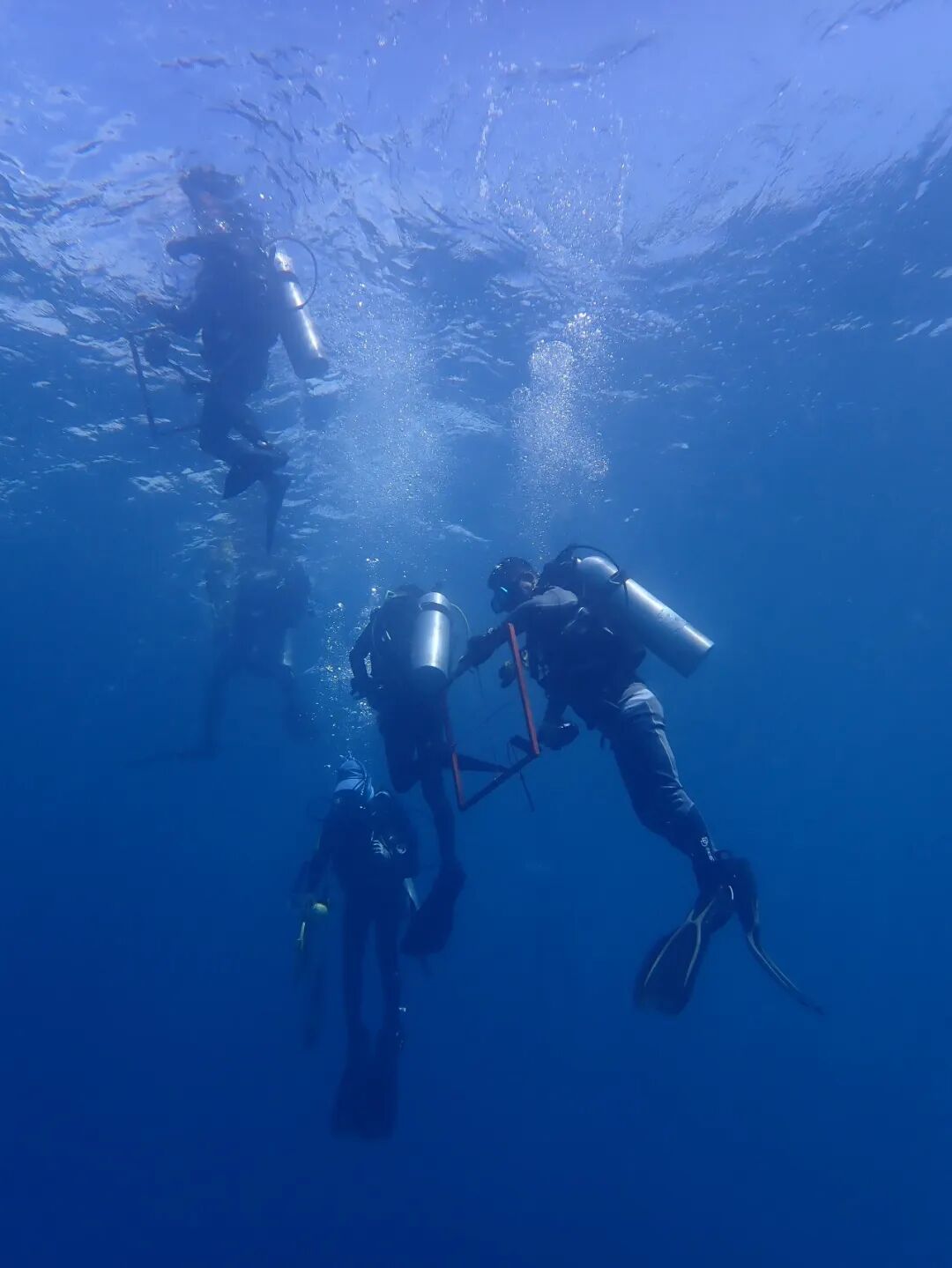 这里没有舒适的办公桌,只有烈日暴晒。队员们的皮肤被晒得黝黑脱皮;长时间晕船,吃不下饭、睡不着觉成了常态;反复下潜引发的中耳炎,海水浸泡导致的皮肤刺痛,以及暗流、水压、有毒生物蜇伤的潜在威胁,都是队员们日复一日要面对的“必修课”。