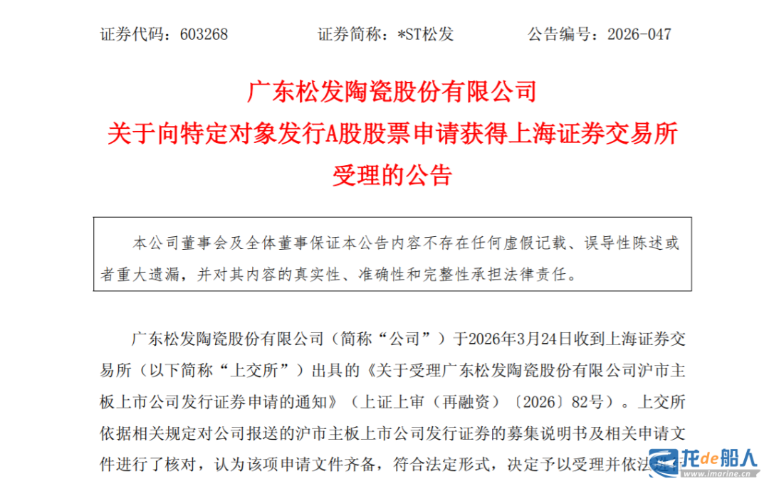 *ST松发表示,此次向特定对象发行股票募集资金旨在优化该公司在手订单交付能力,把握行业景气周期机遇,保障该公司业绩持续稳定增长。目前,该公司新接订单位居全球前列,在手订单持续攀升,部分订单交付已排期至2030年及之后。为进一步优化该公司订单交付能力,有效保障在手订单及时消化,该公司亟需启动系统性扩产计划,通过扩大投资、优化资源配置、提高生产效率等手段,一方面加速消化在手订单,保障在手订单如期交付,另一方面提高承接新订单的能力。