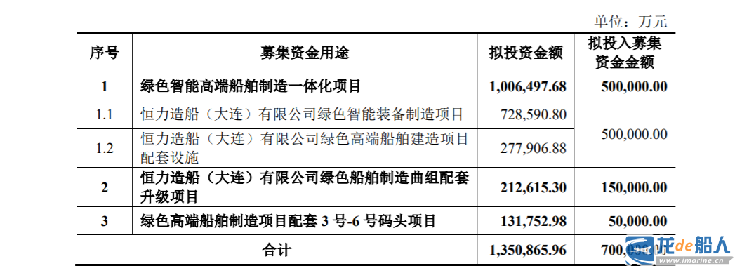 绿色智能高端船舶制造一体化项目,项目投资额100.65亿元,投入募集资金50亿元: