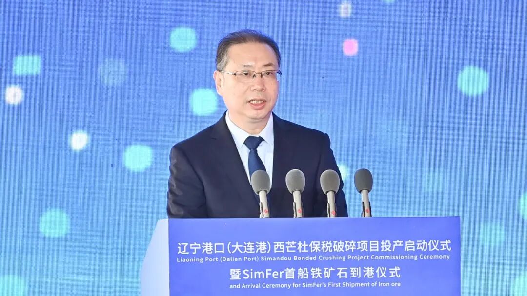 刘彬在致辞中表示,作为辽宁港口一体化运营的责任主体,辽港集团聚焦“东北亚一流强港企业”的战略目标,将发展临港实体经济、提升口岸核心效能作为首要任务,主动服务国家资源安全战略。西芒杜保税破碎项目的成功投产,是辽港集团推动港口功能跃迁、实现高质量发展的生动实践。辽港集团将以此次项目投产为契机,坚持精益运营、科技赋能、服务优化,全力以赴保障项目安全、高效、稳定运行,深挖保税贸易潜力,着力打造东北亚铁矿石分拨与加工中心,以模式创新提升产业链供应链价值,以硬核担当保障国家资源安全,为新时代东北全面振兴和国家铁矿石供应链优化贡献更强劲的辽港力量。