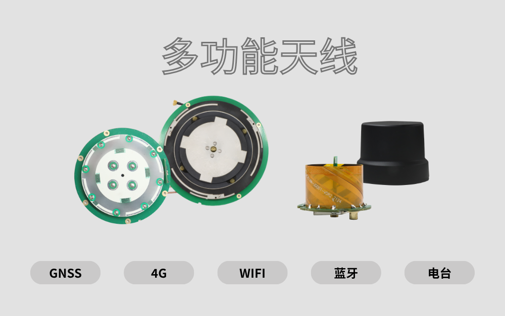 多功能天线系列:GNSS天线与4G/WiFi/蓝牙/电台天线一体化设计,可同时满足导航与通信需求,在提升集成度的同时,降低终端设备设计复杂度与成本。