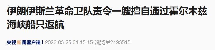 数据显示,3月1日至23日,途经该海峡的商品运输船过境次数较冲突前下降95%。