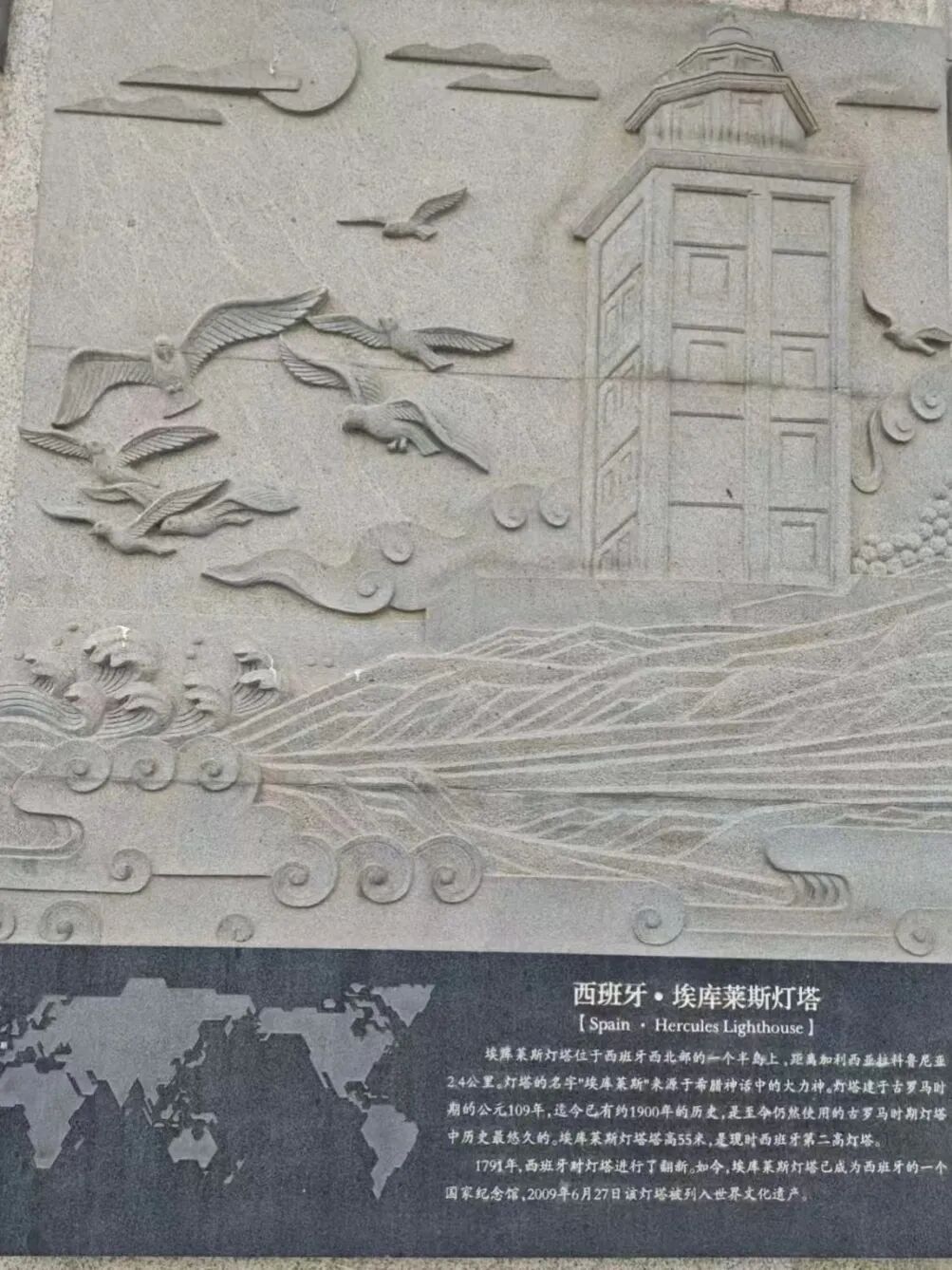 如今,我们普通厦门人能见到的灯塔,基本上就是这个五通灯塔,实际上它是翔安隧道的通风塔。走近五通灯塔,只见基座平台上镌刻着10幅世界著名灯塔的浮雕,包括中国的硇洲灯塔、埃及的亚历山大灯塔、美国的鸽点灯塔等。灯塔大道两侧设有30面世界著名的灯塔浮雕台。这里仿佛一座露天的“灯塔博物馆”,成为传播灯塔文化的基地之一。