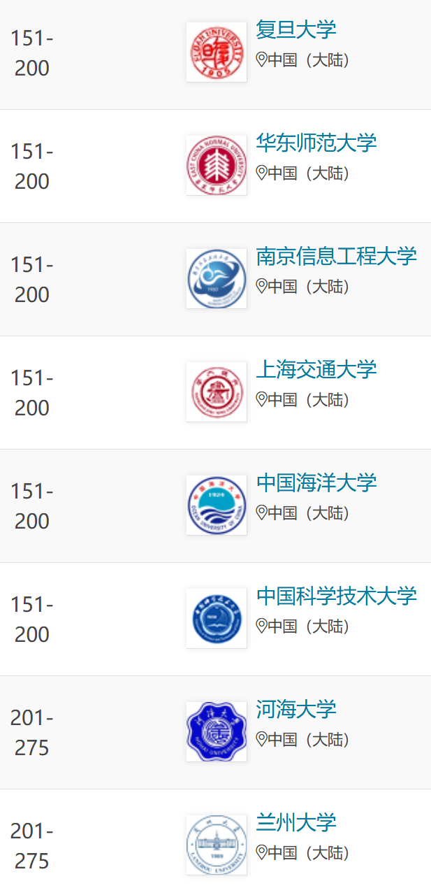 2026年QS世界大学学科(中国内地:地球和海洋科学)排名公布!