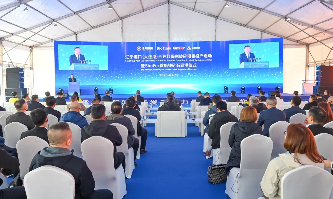 3月25日,辽宁港口(大连港)西芒杜保税破碎项目投产启动仪式暨SimFer首船铁矿石到港仪式在辽港集团大连港矿石码头举行,标志着一条链接几内亚与中国东北的全新铁矿石物流通道随即贯通。