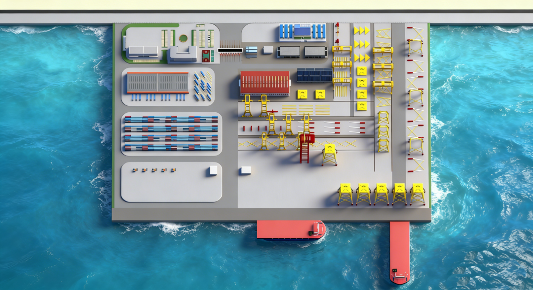 该基地依托涵江作业区1号泊位及临港陆域资源建设,占地约15万平方米,总投资5亿元,聚焦海洋工程领域钢结构制造核心赛道,致力于打造一座规模化、高标准、智能化的海工智造基地,主要生产海上风电导管架、漂浮式基础、海上升压站等产品。项目建成后,将构建自主可控、智能高效的智造体系,完善福建海工装备产业链,提升核心竞争力,同时有效带动涵江临港产业集聚,激活区域产业发展新活力。