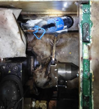 3、燃油共轨端安全阀:通过手触摸和温度测量安全阀泄放管壁温度正常,也可以通过主机冲车后松开安全阀泄放管查看是否有燃油流出(图示六)