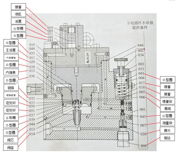 解体后对各零部件进行清洁检查,各通道吹通,更换各密封圈、阀芯、阀座、滑阀等主要关键零部件,建议更换时结合零部件图逐个标记更换以免遗落(图示九)
