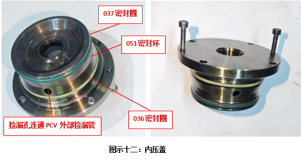 5、日常检查注意PCV检漏管是否有油流出,即“图示十二:内压盖”上密封圈状况是否良好,燃油流出则表明037密封圈/051密封环失效或039密封圈/050密封环失效,滑油流出则表明036密封圈或038密封圈失效。