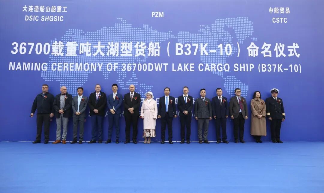 PZM公司总经理Mr.Dariusz Doskocz,劳氏船级社大中华区副总裁张文,中船贸易船海业务二部副总经理黄重阳等出席仪式。命名砍缆嘉宾Mrs. Bozena Golik将该船命名为“波轮瓦达格”轮。
