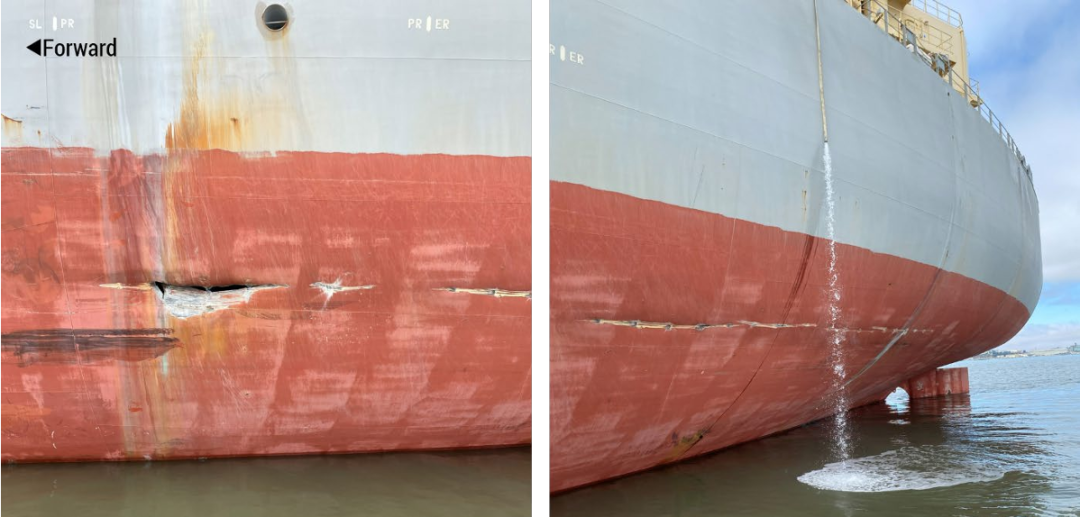 洞周围有大量凹陷、钢板变形和裂纹,但没有低于水线的损伤,船舱也没有进水。修船大约花了39万美元。
