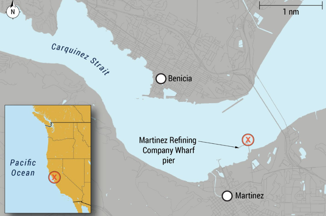 2024年10月14日,凌晨大约4点12分,一艘名为Platanos号的原油油轮,在美国加州马丁内斯炼油厂码头卸完货之后,准备离港。