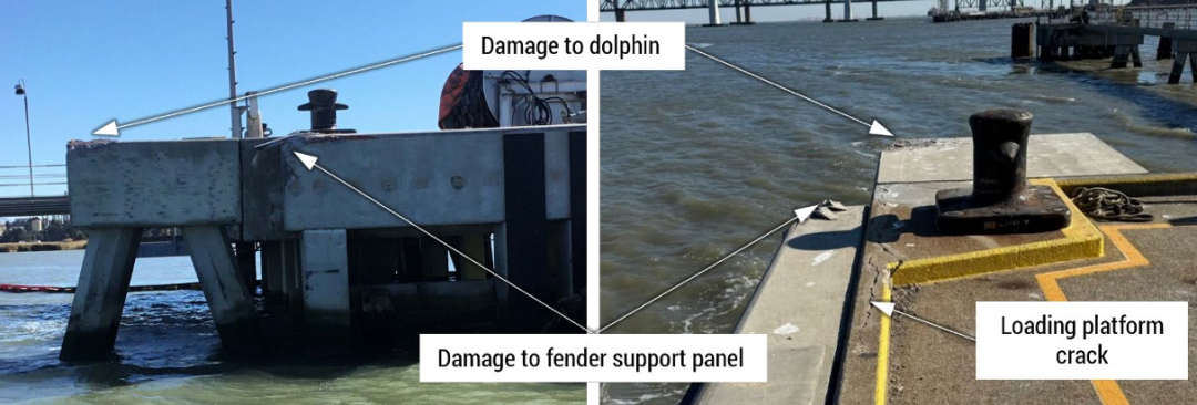 码头那边,缆桩和防撞护舷的混凝土表面出现了剥落和裂缝。码头修复费用最初估计高达11万美元。