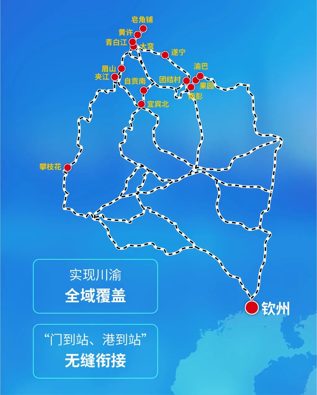 为满足东北粮食在川渝区域的多元化分拨需求,新通道同步开通钦州至重庆、四川多个核心站点的发运服务,实现川渝全域覆盖: