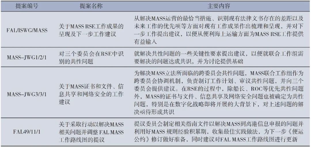 表1 我国为解决FAL框架下的MASS立法问题向IMO提交的提案
