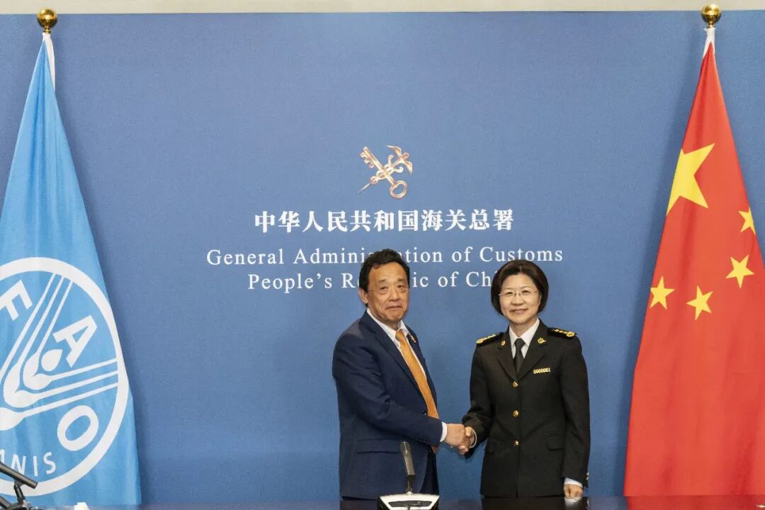 屈冬玉总干事会见中国海关总署署长孙梅君