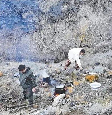 过河时,桥涵分项负责人张涛骑的马体力不支滑倒,在1.5米深的河中,他被激流冲出几十米,在一个拐弯处被水流甩到了岸边才挣扎着爬了上来。“掉进水里,瞬间就什么都看不见、什么都听不到了。”张涛回忆。大伙儿匀出一套棉衣来给他换上,并赶紧返回两三公里外的营地生火取暖。两个小时后,烘干了衣物和装备,他们又重新上路。