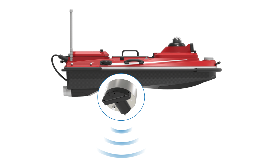 多波束0.2-200m的超广测深范围,可轻松覆盖水库浅水区域与深水区全量程测量,7.5mm的超高测深分辨率,让水下地形的细微起伏都清晰可辨;内置集成声速传感器、姿态仪、定位系统,声速测量精度达0.1m/s,横摇/纵摇精度0.1°,从声速补偿到姿态校准全程自主完成,无需额外外接设备,大幅降低了与USV03无人船的集成难度,也让测量数据的精准度更有保障。