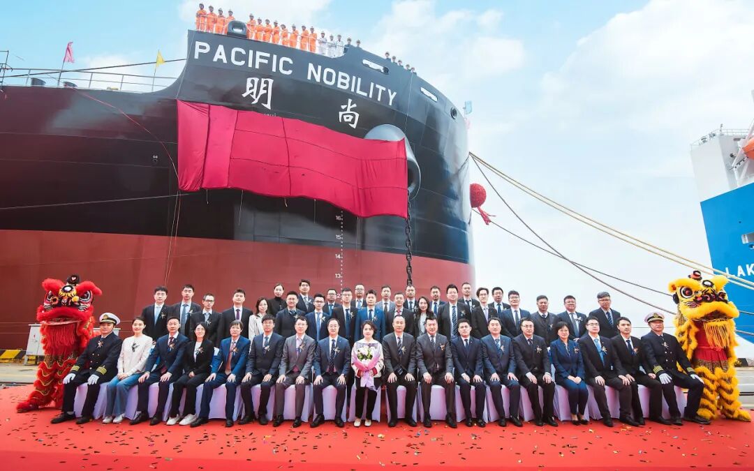 邹海峰命名新船为“PACIFIC NOBILITY”(“明尚”轮),并祝愿新船一帆风顺,满载荣光!