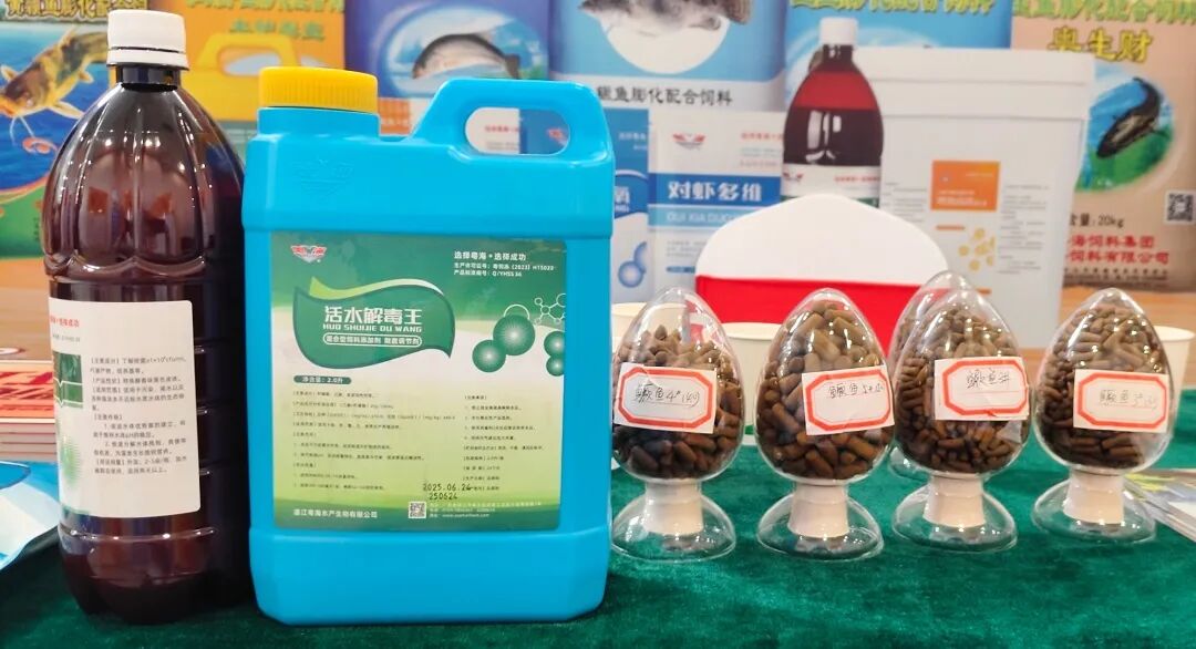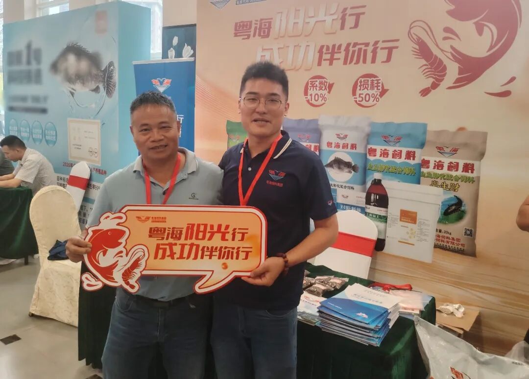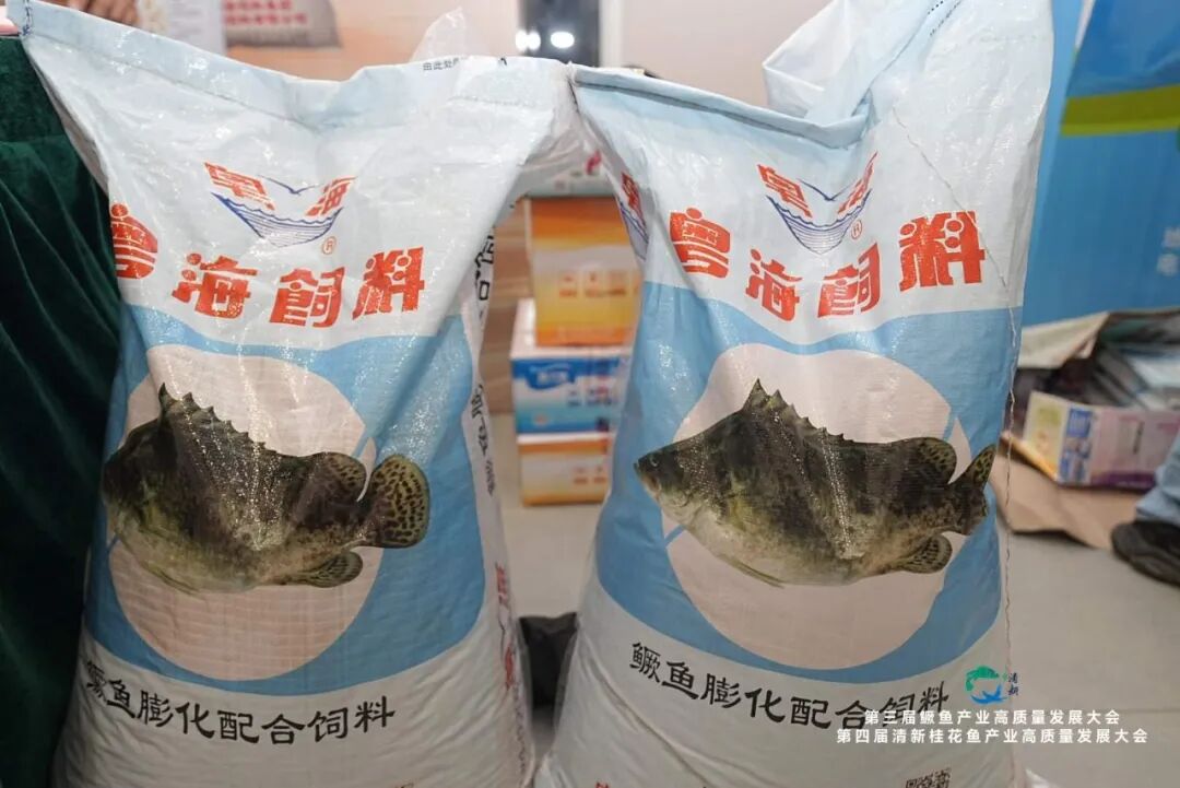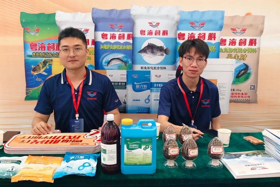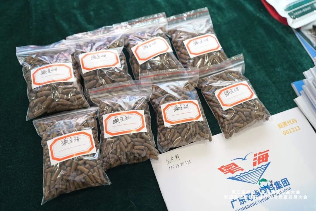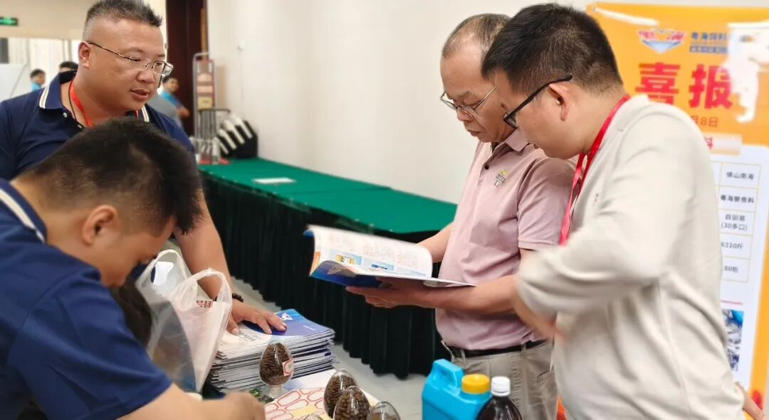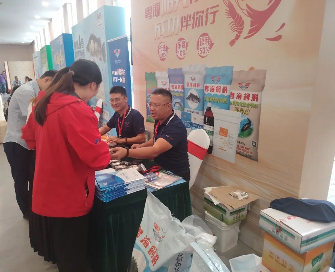 ▲ 会议现场,粤海饲料展示的鳜鱼专用饲料及动保系列产品引发行业广泛关注