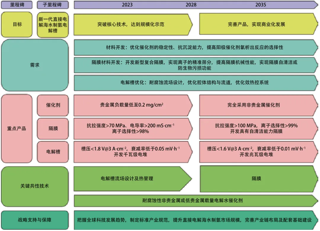 “直接电解海水制氢的催化剂与隔膜研究”工程研究前沿的发展路线