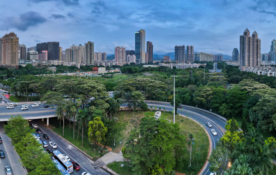 从深南皇岗立交一带看中心公园B区。公园自南至北分为A、B、C、D、E区(2020年)