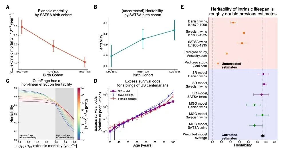 他们首先对著名的瑞典老龄化收养/双胞胎研究(SATSA)进行了深度拆解。这组数据记录了从 1900 年到 1935 年间出生的双胞胎,这段时期正好是现代医疗技术飞速进步的黄金时代。