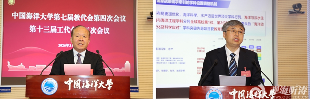 3月26日,中国海洋大学第七届教职工代表大会第四次会议、第十三届工会会员代表大会第三次会议在崂山校区召开。学校党委书记李明出席会议并讲话,校长张峻峰作学校工作报告。