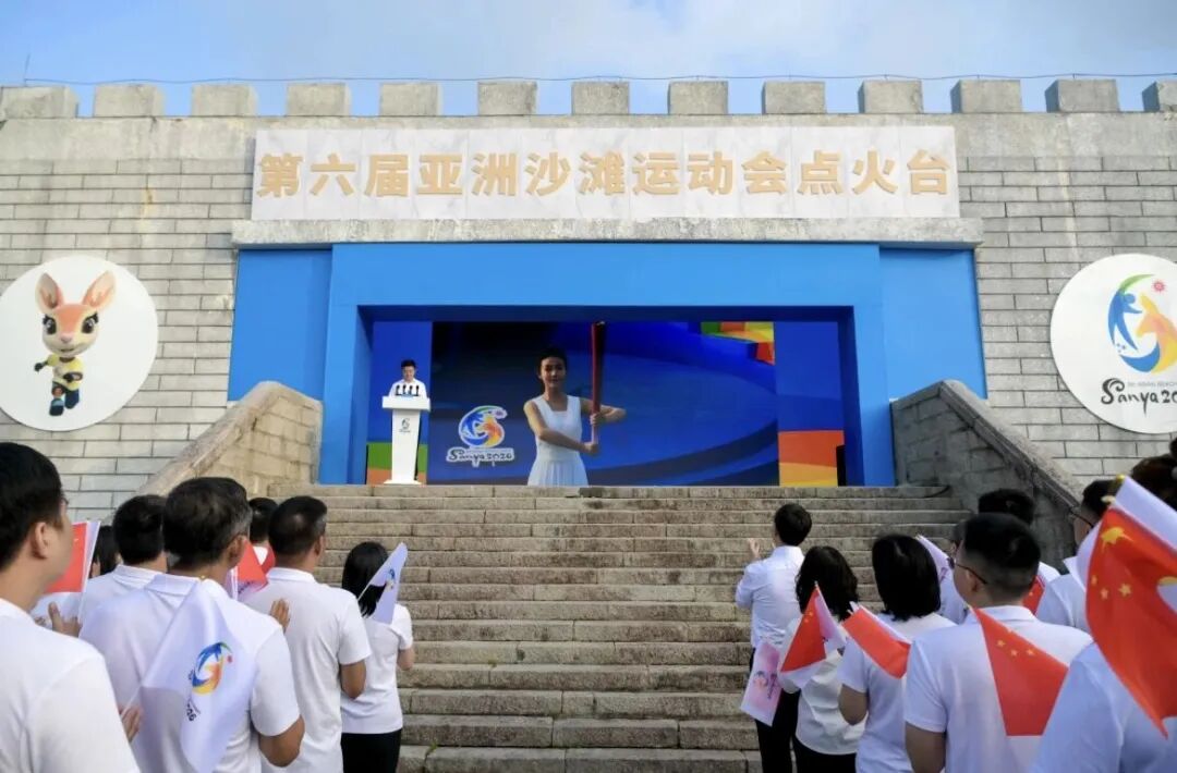 8时30分,火炬传递起跑仪式现场全场肃立,国旗护卫队与亚奥理事会会旗护卫队先后入场,主持人宣布奏响国歌、奏亚奥理事会会歌,嘹亮歌声回荡在三亚湾畔。火种护卫队护送火种登场,点燃引火棒后,并点燃火种盆,熊熊圣火升腾,象征亚洲体育精神的延续。随着“三亚2026年第六届亚洲沙滩运动会火炬传递开始”的宣布,第一棒火炬手昌雅妮手持火炬,正式开启本次火炬传递的精彩征程。